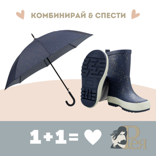 Fresk: Гумени ботуши от 100% естествена гума + чадър от рециклируеми материали Indigo dots