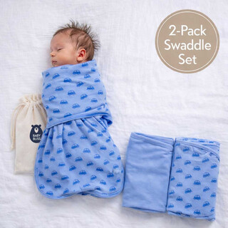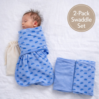 BabyBliss - BlissSnug: Сет от 2 антистрес пелени за повиване - Синьо и Сини коли (0-3 месеца)