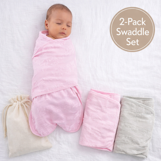 BabyBliss - BlissSnug: Сет от 2 антистрес пелени за повиване - Сиво и Розово (0-3 месеца)