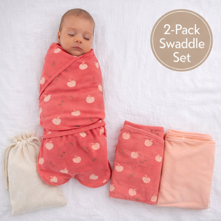 BabyBliss - BlissSnug: Сет от 2 антистрес пелени за повиване - Розов и Lovely Apples (0-3 месеца)