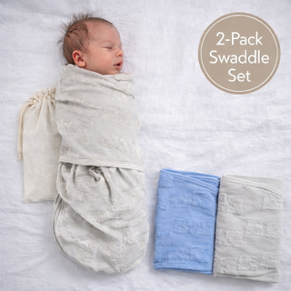BabyBliss - BlissSnug: Сет от 2 антистрес пелени за повиване - Сиво и Синьо (0-3 месеца)