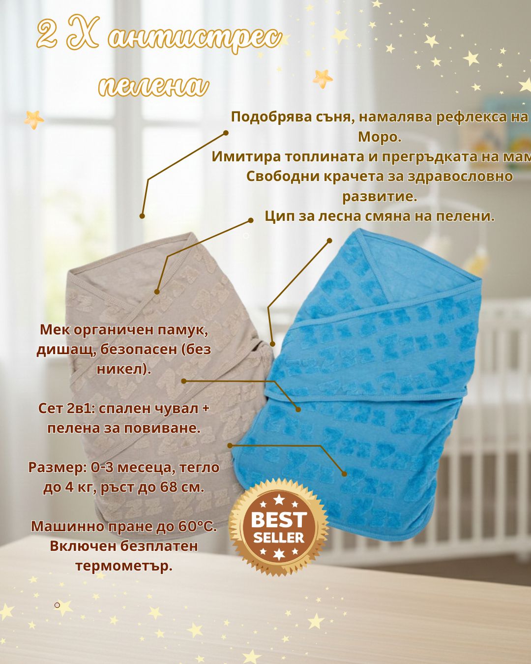 Поддържа бебето сухо и охладено, намалява изпотяването