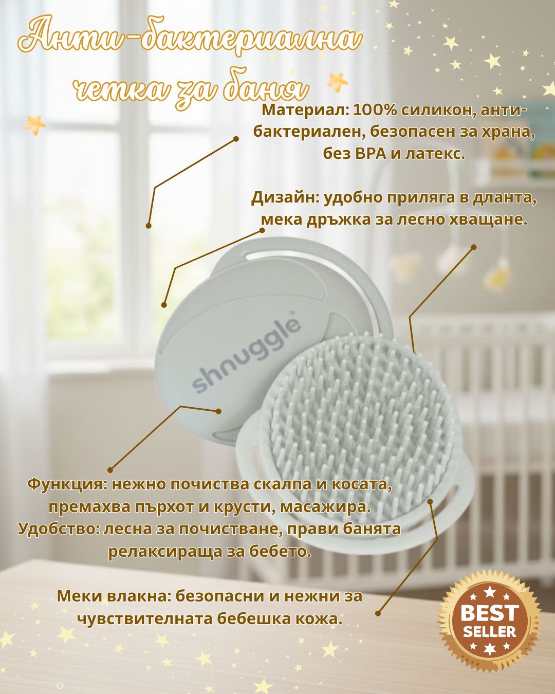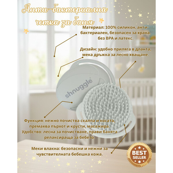 Анти-бактериална силиконова четка за баня