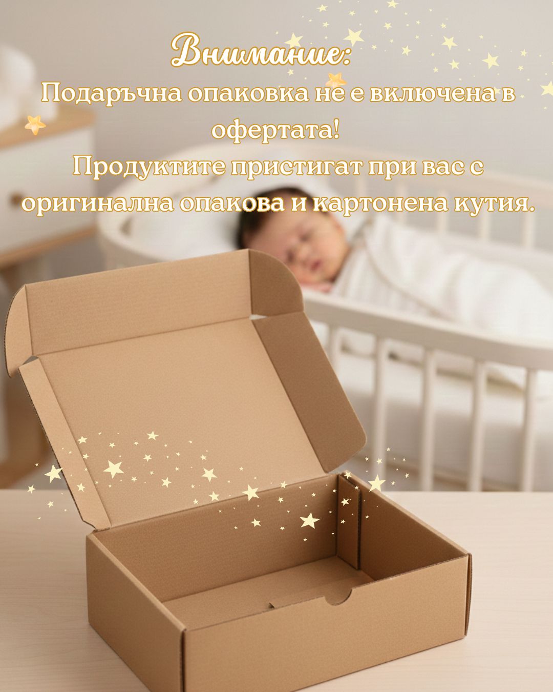Посрещнете първите дни на вашето бебе с кутия, пълна с внимателно подбрани продукти за спокойствие, комфорт и безопасност. Включва всичко необходимо за щастлив старт – от първите гушкания до първите игри и разходки.
