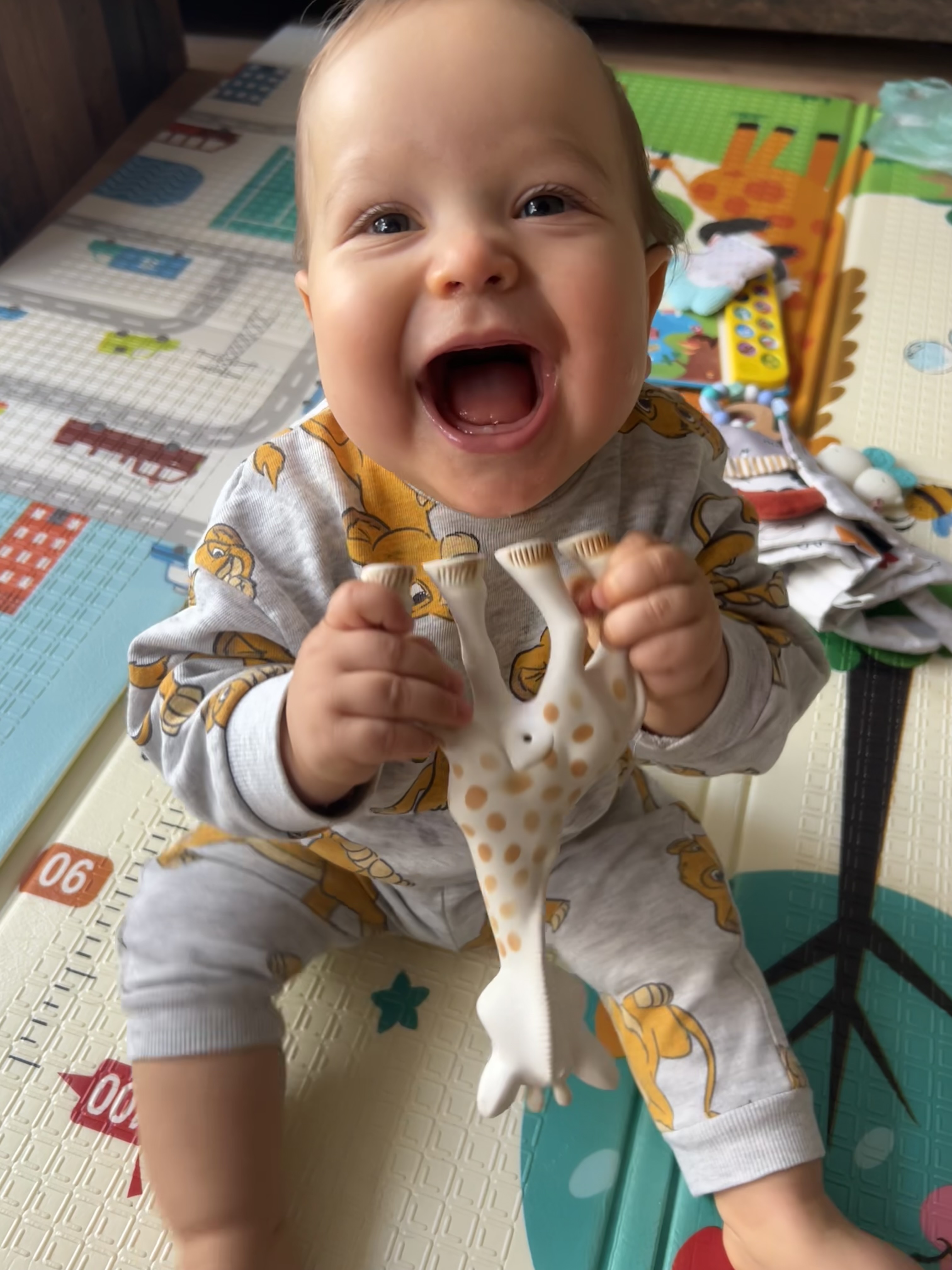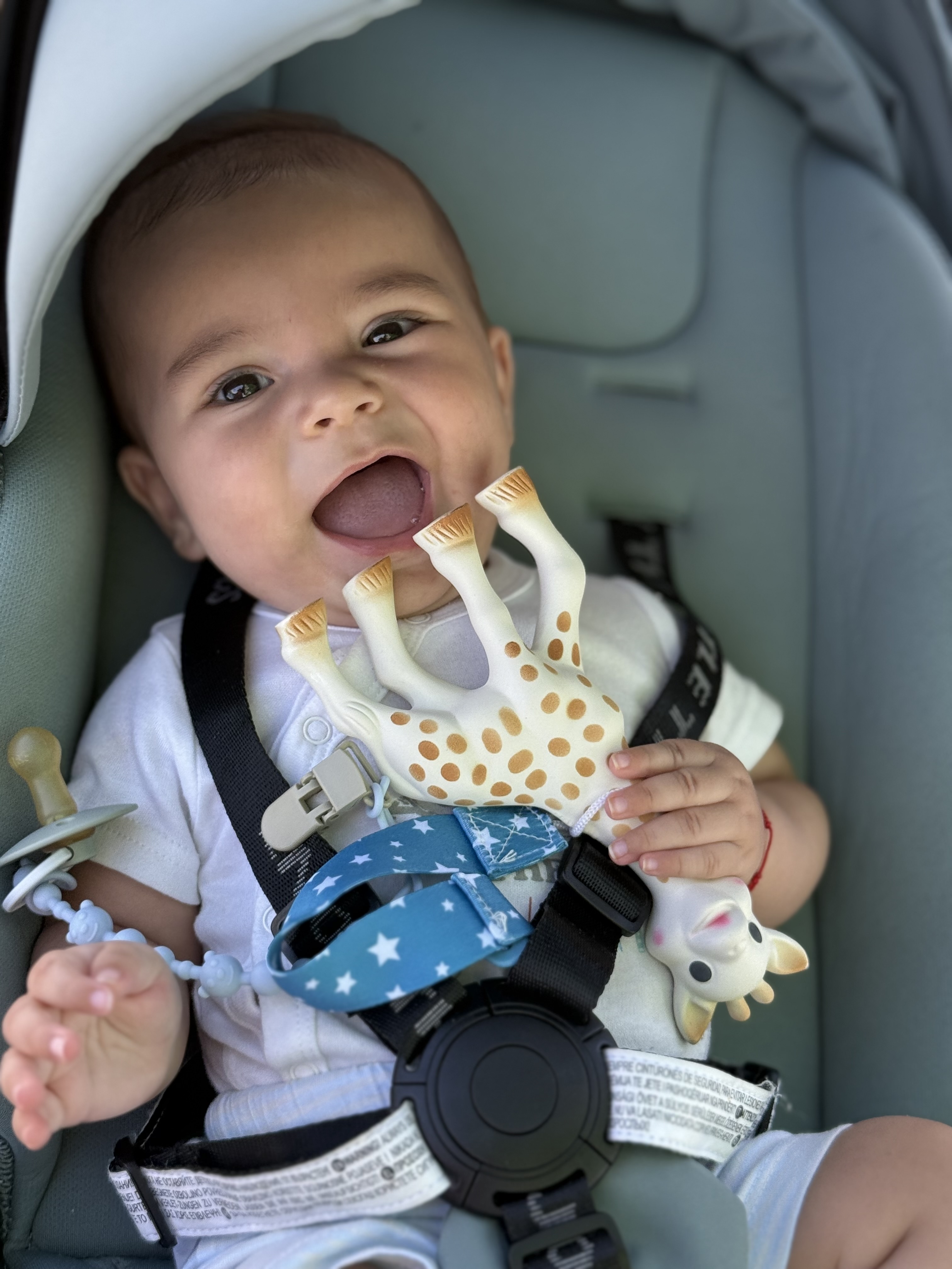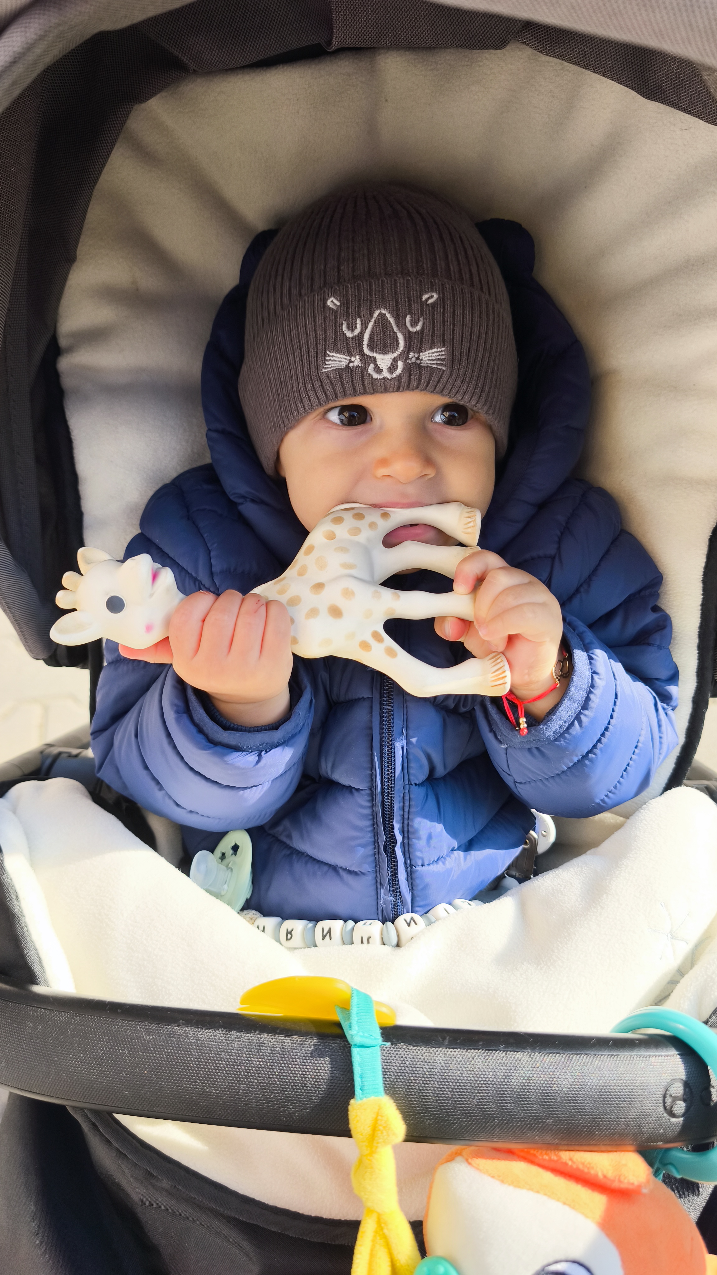 Жирафчето Софи е първата истинска приятелка на моето дете! ???? Мека, лека и удобна за хващане, успокоява го винаги, когато никнат зъбките. Харесвам, че е направена от естествен каучук и няма неприятна миризма. Вече е неразделна част от нашите игри и разходки — просто я обожаваме!