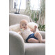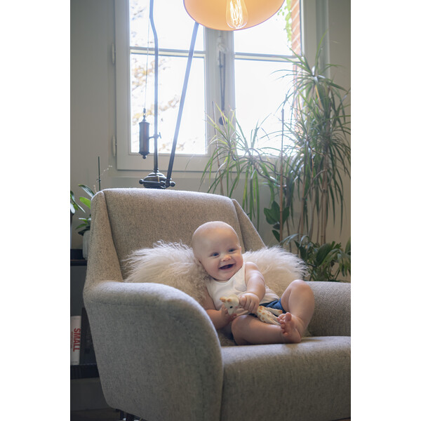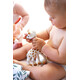 Осезание - Лека, тя е перфектно адаптирана за малките ръчички на бебето, а дългите крака и шия я правят лесна за хващане. Нейната текстура наподобява човешката кожа, успокоява и предизвиква физиологични и емоционални реакции на бебето, които ще го спокоят.