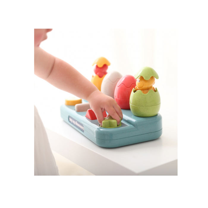 Детето движи фигурите по различни начини и динозаврите изкачат от яйцето си.