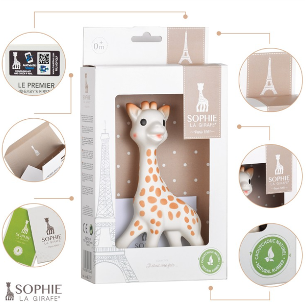 Вашето Жирафче Софи е уникално! Има номер и ръчно рисуваните му петна могат да варират от един модел на друг. Защото ние знаем, че всяко бебе е уникално, затова и всяко жирафче е различно! Продавано по целия свят, той съпътства растежа на милиони бебета и повече от 60 години е безспорен bestseller за най-малките.