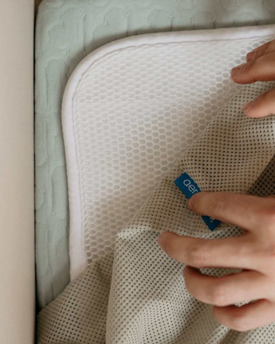 Комбиниран с перфорирани чаршафи AeroSleep, се гарантира максимална въздухопропускливост и комфорт за детето.