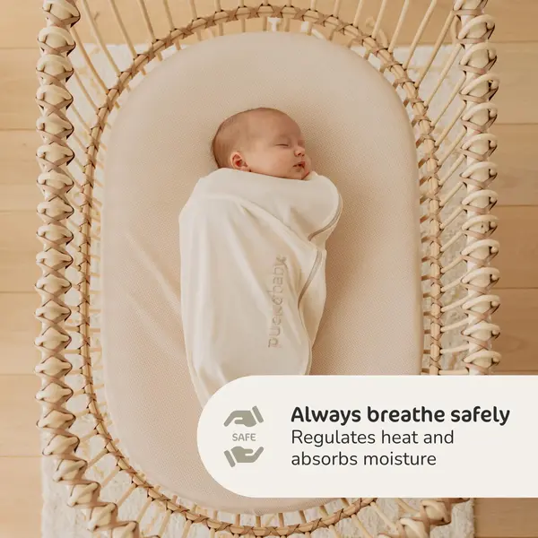 Калъфът регулира температурата и отводнява излишната топлина, създавайки приятна и безопасна среда за сън.