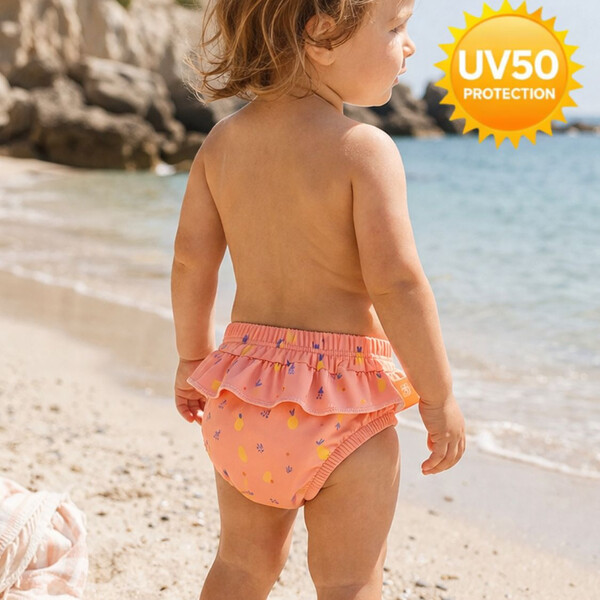 Благодарение на UV защита 50+, чувствителната кожа е ефективно защитена от слънцето, а специалната абсорбираща вътрешна част поддържа детето сухо и комфортно.