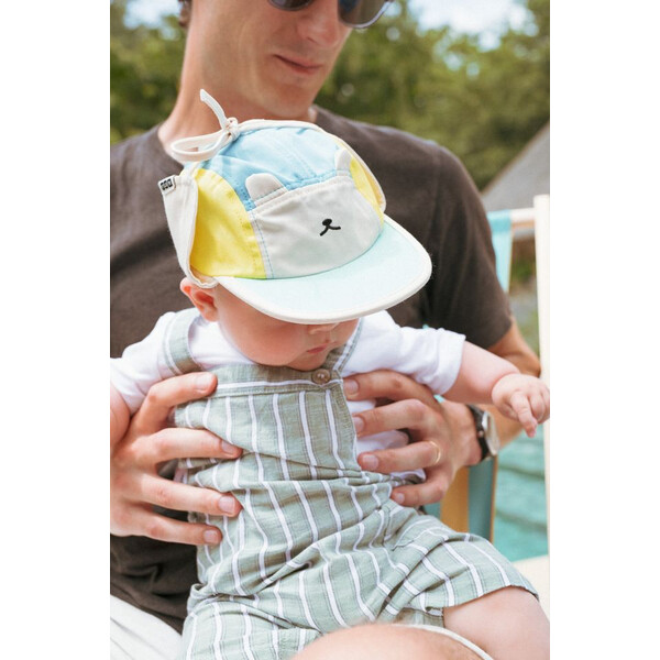Осигурява пълна защита за лицето, ушите и тила благодарение на практичната сгъваема козирка. С UPF 50+ защита шапката блокира 100% от вредните UV лъчи и е идеална за игри и разходки на открито.