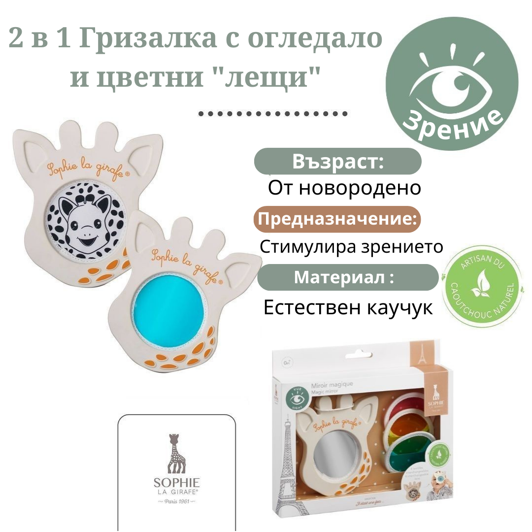2. 2 в 1 Голяма гризалка + огледало с цветни лещи