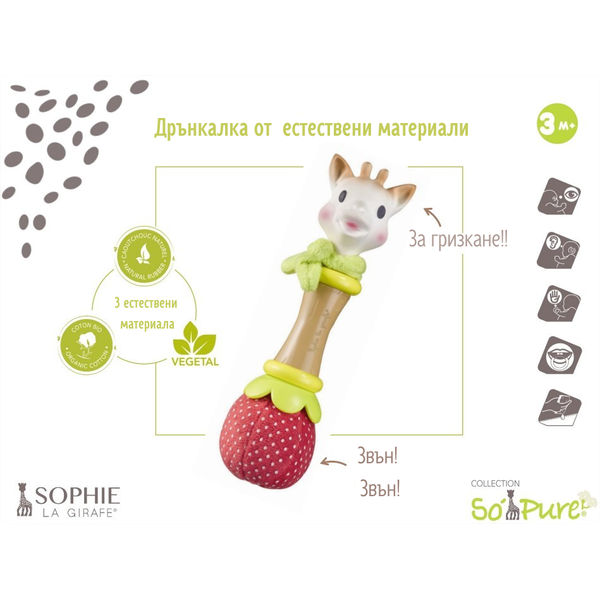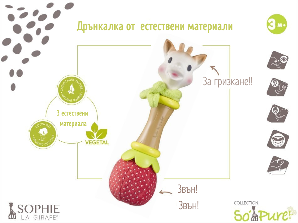 Първата дрънкалка Софи Жирафрчето от 3 естествени материала !