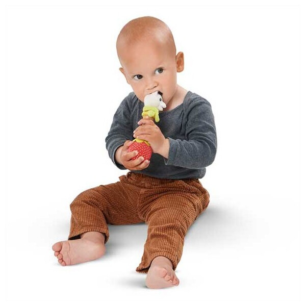 Лесна за захващане и държане от малките ръчички на вашето бебе, а когато я размахне ще чуе мек и приятен звън, който ще го забавлява.