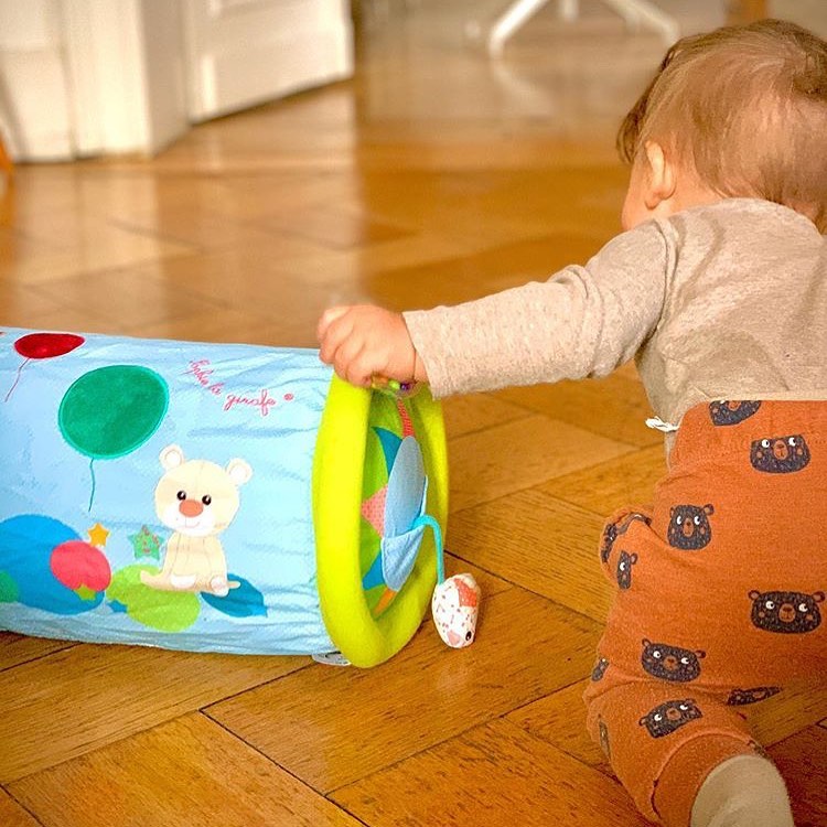 Ролер, изработен от лека материя, която може да се сваля и пере. Във външната част има допълнителни детайли за игри- огледалце, различни текстури, топчета и звънчета, подходящи за деца над 6 месечна възраст. Вашето бебче ще се забавлява катерейки се върху "ролера", ще се научи да става и да се изправя, както и да се претъркулва в него. Същевременно ще му помогне да развие своята самостоятелност и увереност.