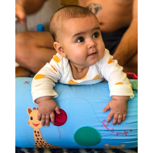 Първата учебна топка на Софи жирафчето е от 100% плат, ще забавлява бебето и ще стимулира всичките му сетива!