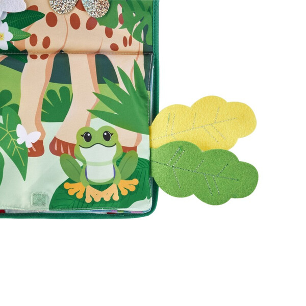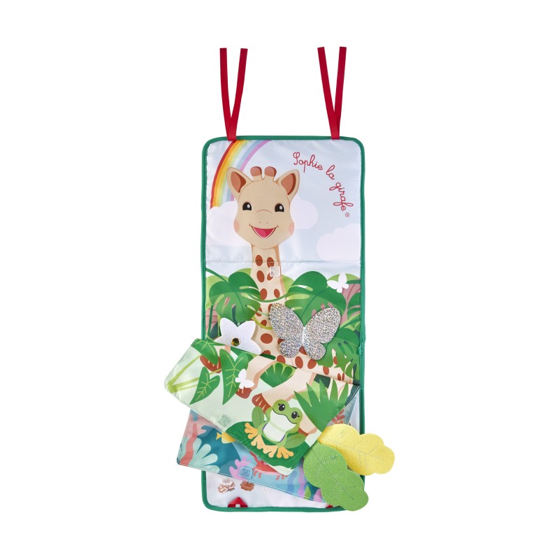 - Разгъната позиция: Бебето тръгва на приключение през 3 свята: джунглата, морето и планините. Характеристиките включват ярки цветове, блестящи материи, разнообразие от тъкани (филц, кадифе, трико...) и елементи за манипулиране: топчета за местене, звънче, шумоляща хартия и др. Перфектно за събуждане на сетивата и стимулиране на фината моторика, докато бебето се забавлява!