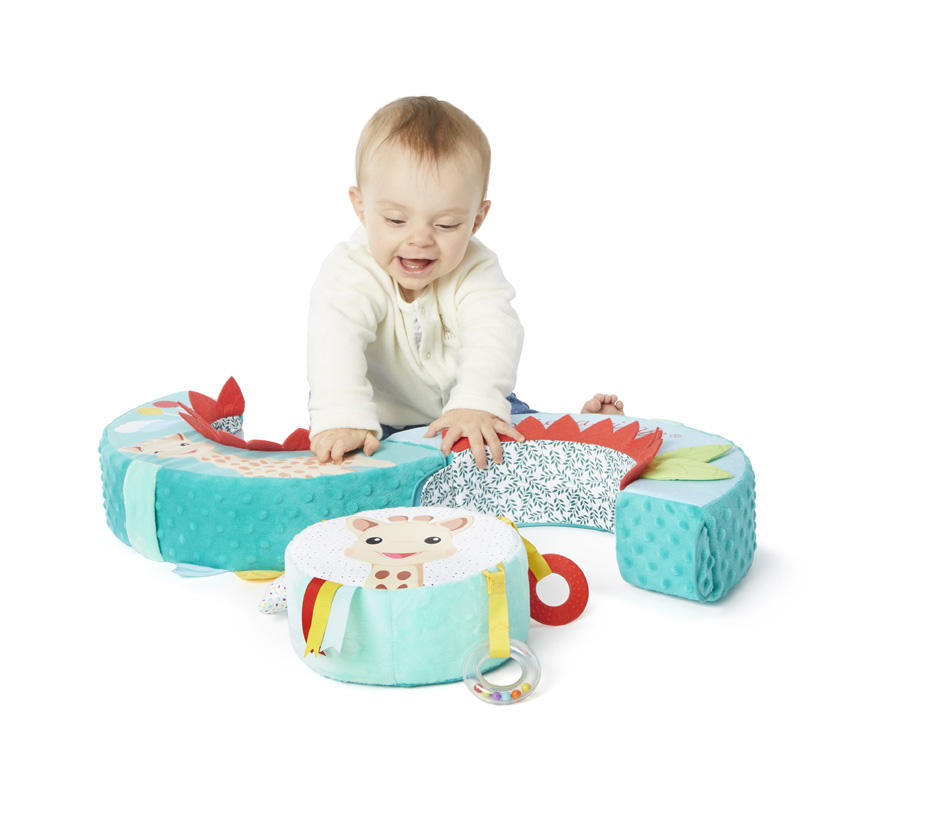 1. Облачето на Софи Жирафчето е направено от 100% пяна и стимулира двигателните умения и сензорното развитие на бебето.