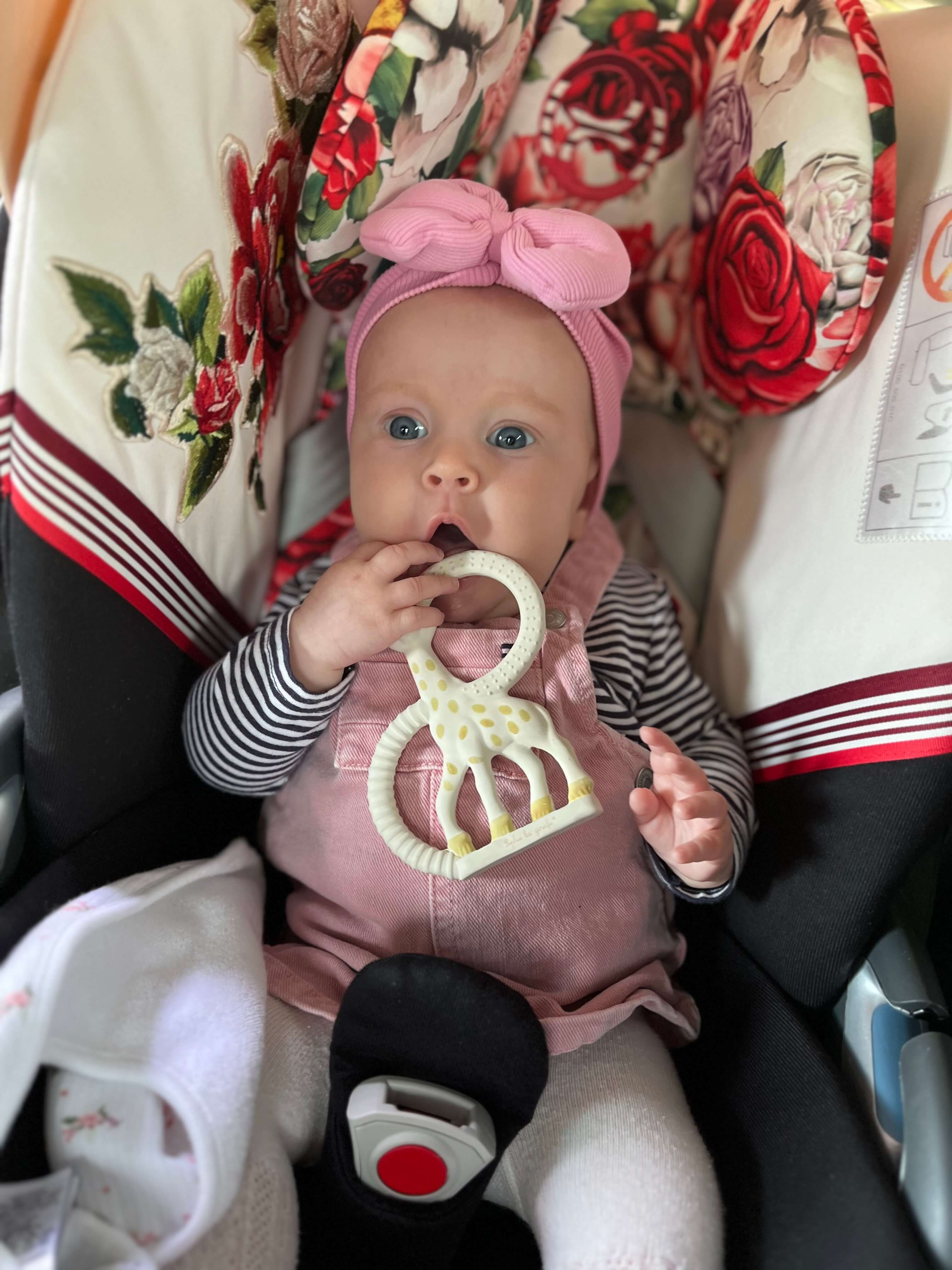 Двата ринга на гризалката имат различна текстура , за да може бебето да избира според нуждите и възрастта му. Това успокоява, дори по-бързо, болезнените венци. Лена за хващане от мънички ръчички.