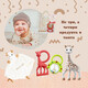 - Автентичното жирафче Софи, направено от 100% естествен каучук, което стимулира всички сетива и е перфектно за периода на никнещи зъбки