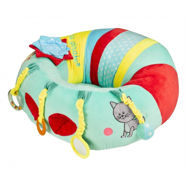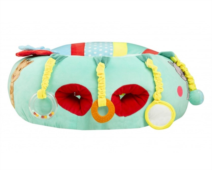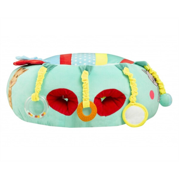 Играта с меката възглавничка, тип фотьйол, в което детето се чувства изключително удобно и му дава възможност да комбинира различни видове активности с прикачащите се играчки.