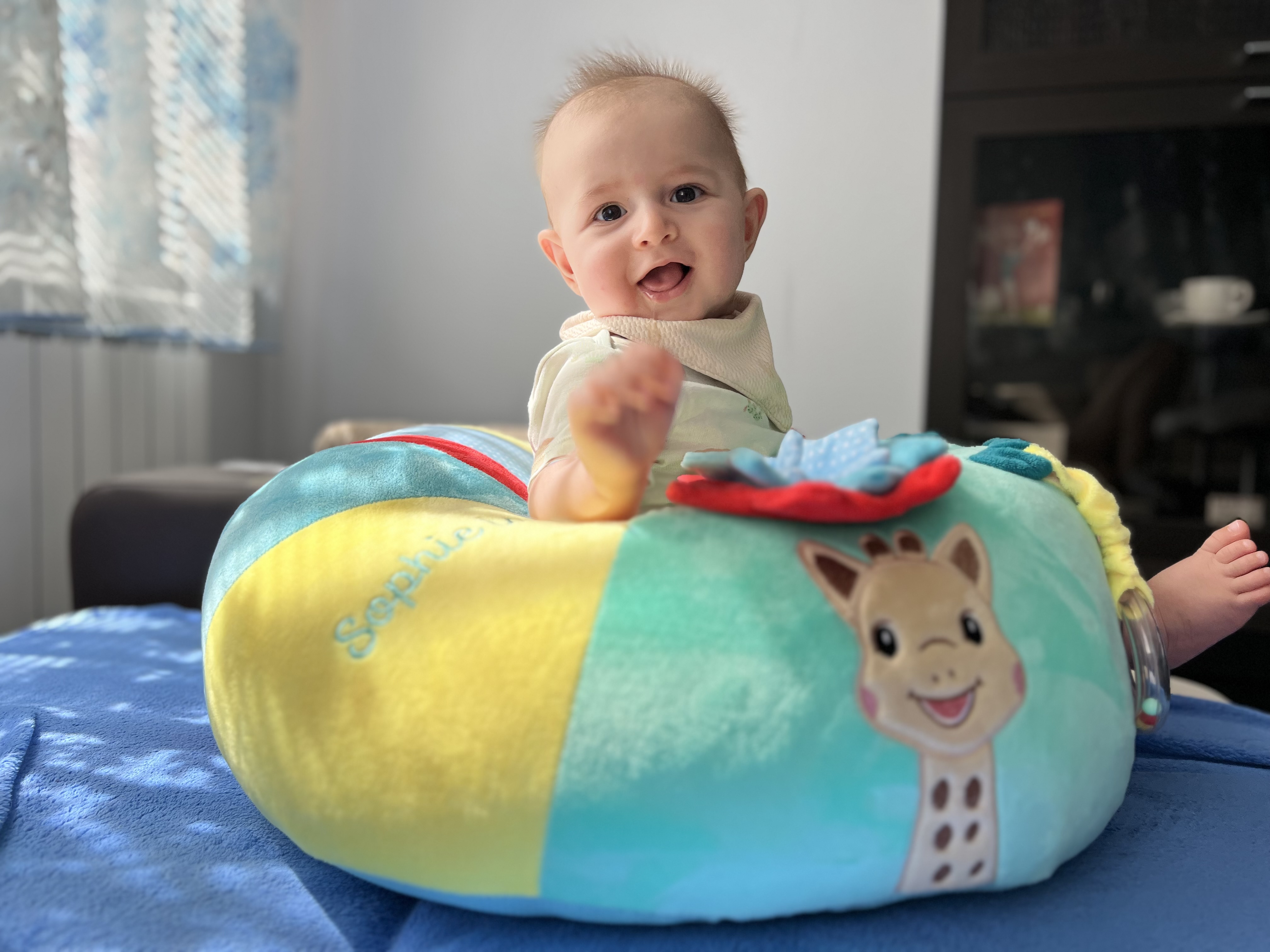 Първата играчка за седене на детето, която включва в себе си комфорт, забавление и развива всичките пет сетива на бебечето.