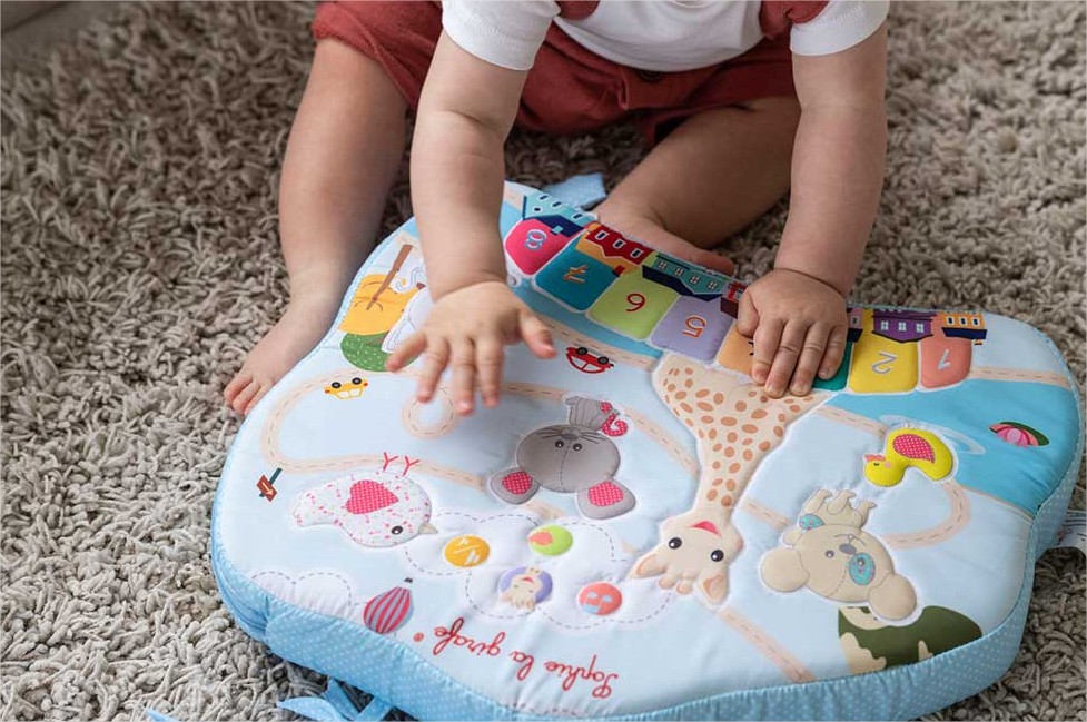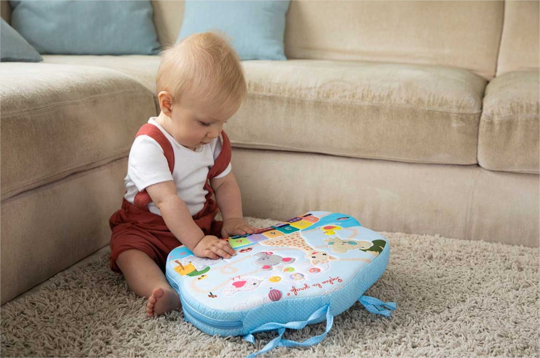 Независимо дали я държите на земята, на колене или закачена на креватчето или в столчето за кола, бебето ще открие многобройните й дейности. Благодарение на конструкцията от пяна, играта е напълно безопасна.
