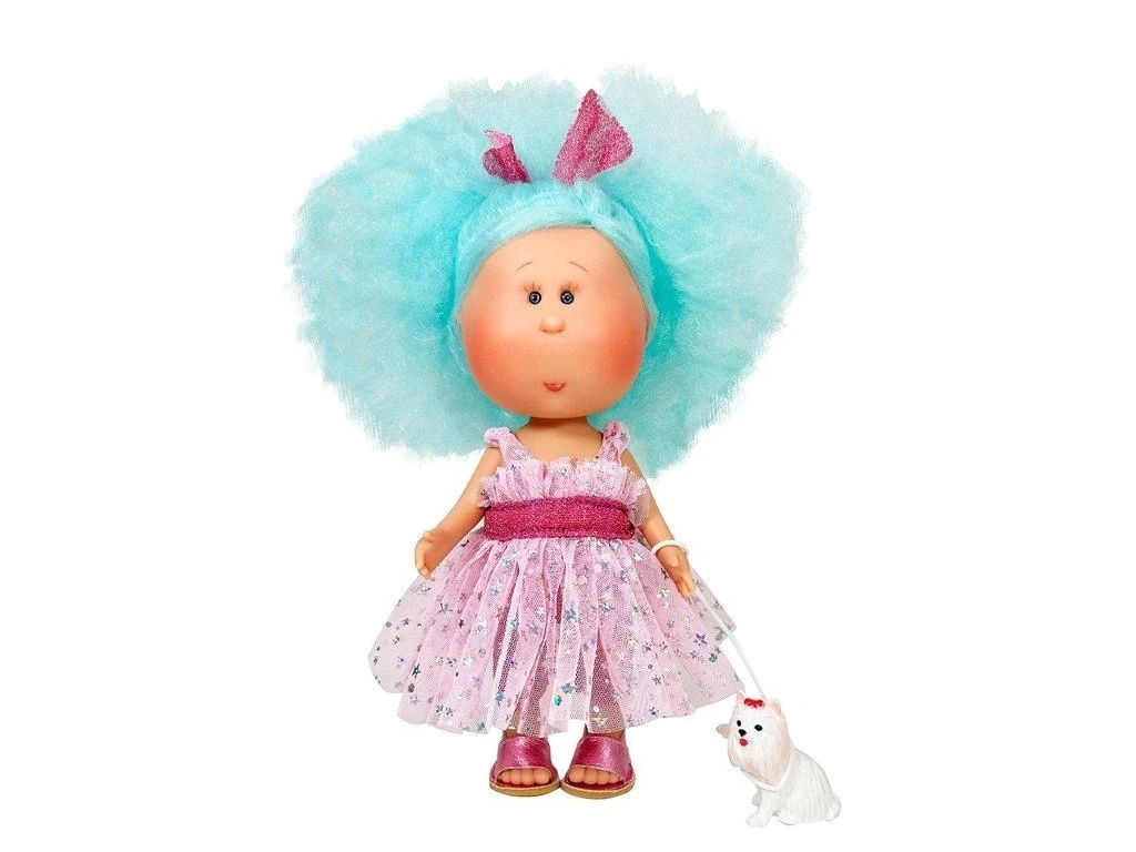 С голяма, къдрава косакато захарен памук, розова, блестяща рокличка, розови сандалки и панделка!