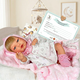 Аксесоарите му са впечатляващи! То има собствена пелена, пухкава шапка, мека играчка, буйки, рокличка, шише и памперс. Също така има акт за раждане, за да го подарите на най-специалният рожден ден!