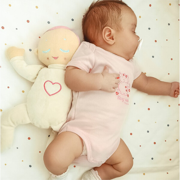 - Куклата Lulla имитира близък контакт с нежност и звуци на успокояващо дишане и сърцебиене до 12 часа.