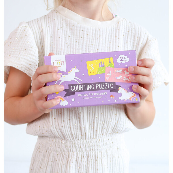 Включва 10 индивидуални пъзела, с число от едната страна и вълшебни животни и др. от другата, които да преброите от другата. Образователна и забавна игра, изработена от дебел картон, така че малките ръчички да могат лесно да боравят с нея.