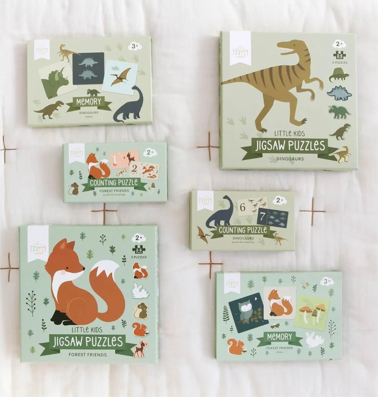 Комплект от пет пъзела "Горски приятели", специално за деца на възраст 2+ години. Всеки пъзел горски приятели се състои от 3 до 5 големи парчета пъзел. Частите на пъзела са изработени от дебел картон - идеални за малки ръчички.