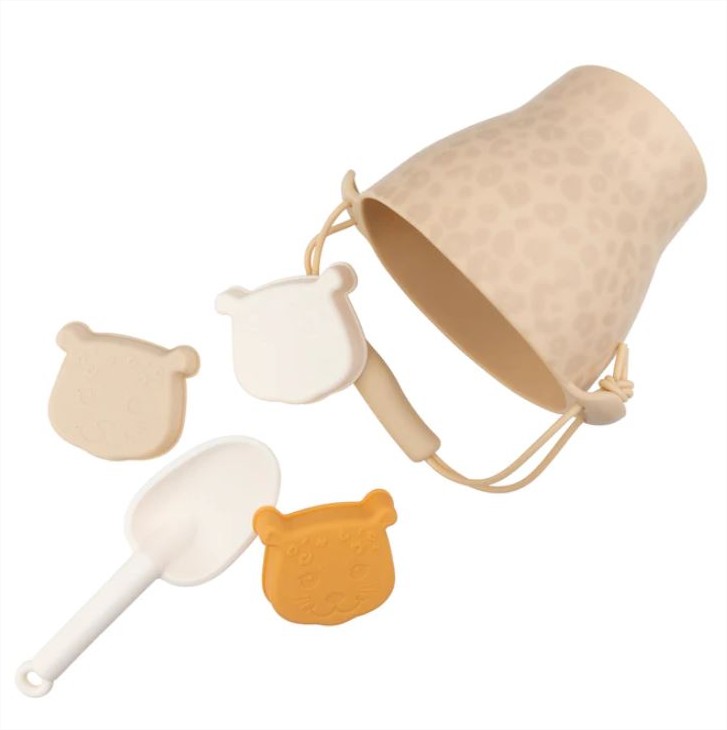 Комплектът включва 1 кофичка, 1 лопатка, 3 формички на животни. Предлага се в мрежа за лесно транспортиране и почистване от пясък