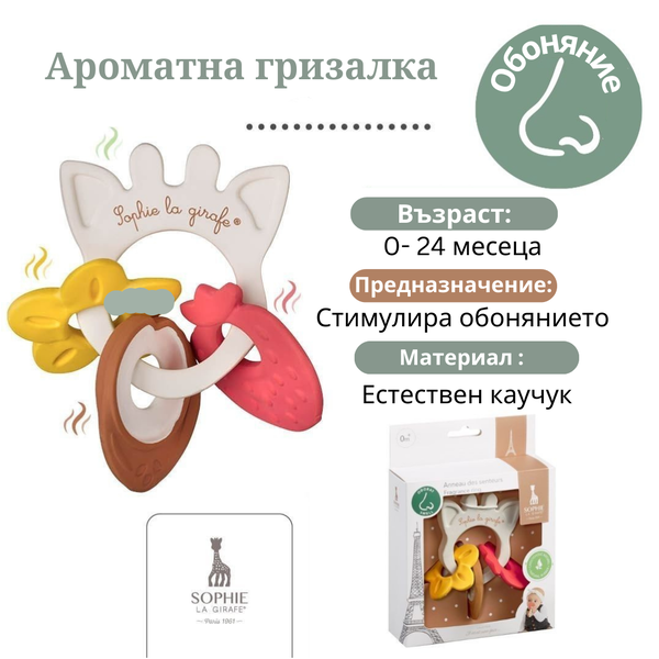 Стимулира обонянието и успокоява бебето с нежни, приятни аромати.