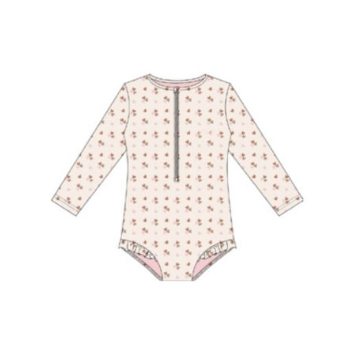 Swim Essentials : Цял бански костюм с ръкав и къдрички "Cozy Hearts"