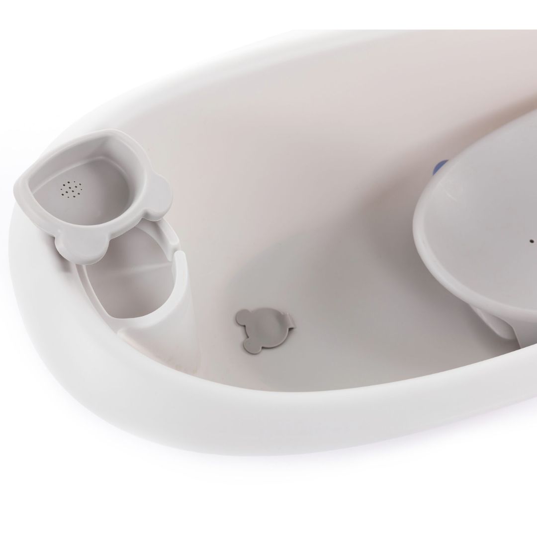 Подвижната седалка с вендузи поддържа бебето стабилно, за да не се плъзга. Тя е със специална форма, съобразена с тялото на новороденото, което ви дава по-голяма увереност и контрол при всяко движение.