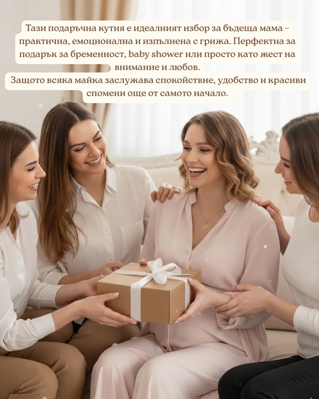 - Истинска грижа, не просто подарък – създадена с мисъл за комфорта и спокойствието на бъдещата майка.