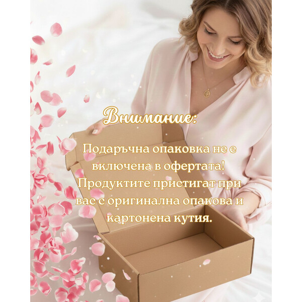 ВНИМАНИЕ: Продуктите в кутията могат да бъдат заменени с други цветове, десени или варианти по ваше желание, както и при изчерпана наличност. Всички промени се извършват след предварително обсъждане с наш служител по телефон и съответно преизчисляване на крайната цена. При промяна в цената препоръчваме доставка с наложен платеж.