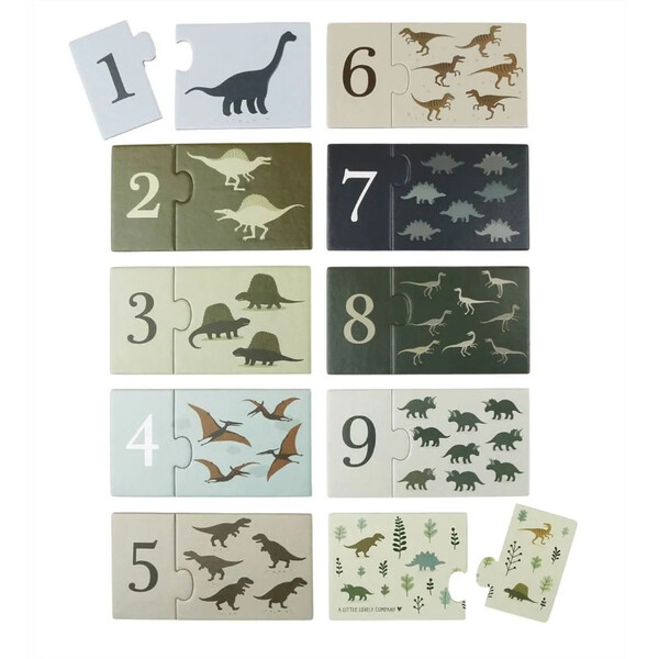 Научете децата да броят от 1 до 10 с този забавен комплект динозаври! Включва 10 двустранни пъзела – с числа от едната страна и динозаври за броене от другата. Изработени от здрав картон за малки ръчички и съхранявани в удобна плъзгаща се кутия.