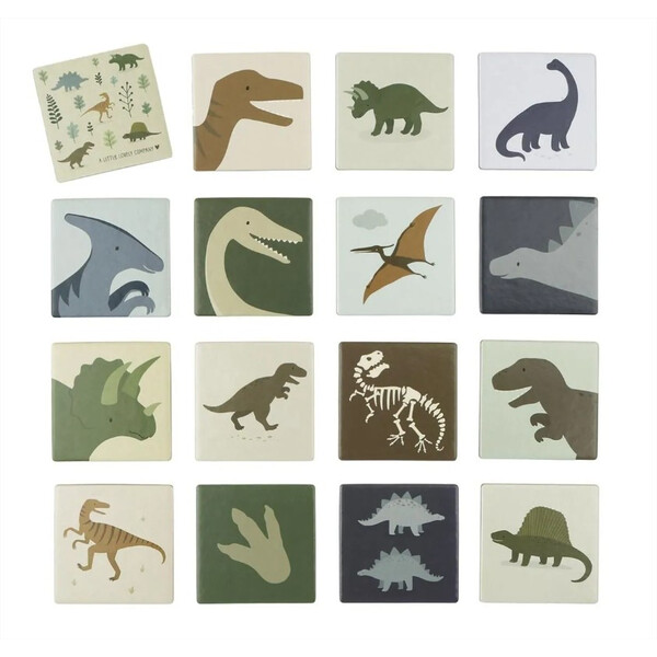 Упражнявайте и развивайте паметта на вашето дете с тази забавна игра! Комплектът съдържа 30 карти с 15 различни динозавърски дизайна, изработени от твърд картон, идеални за малки ръчички.