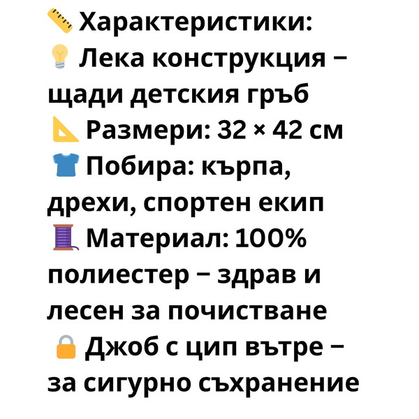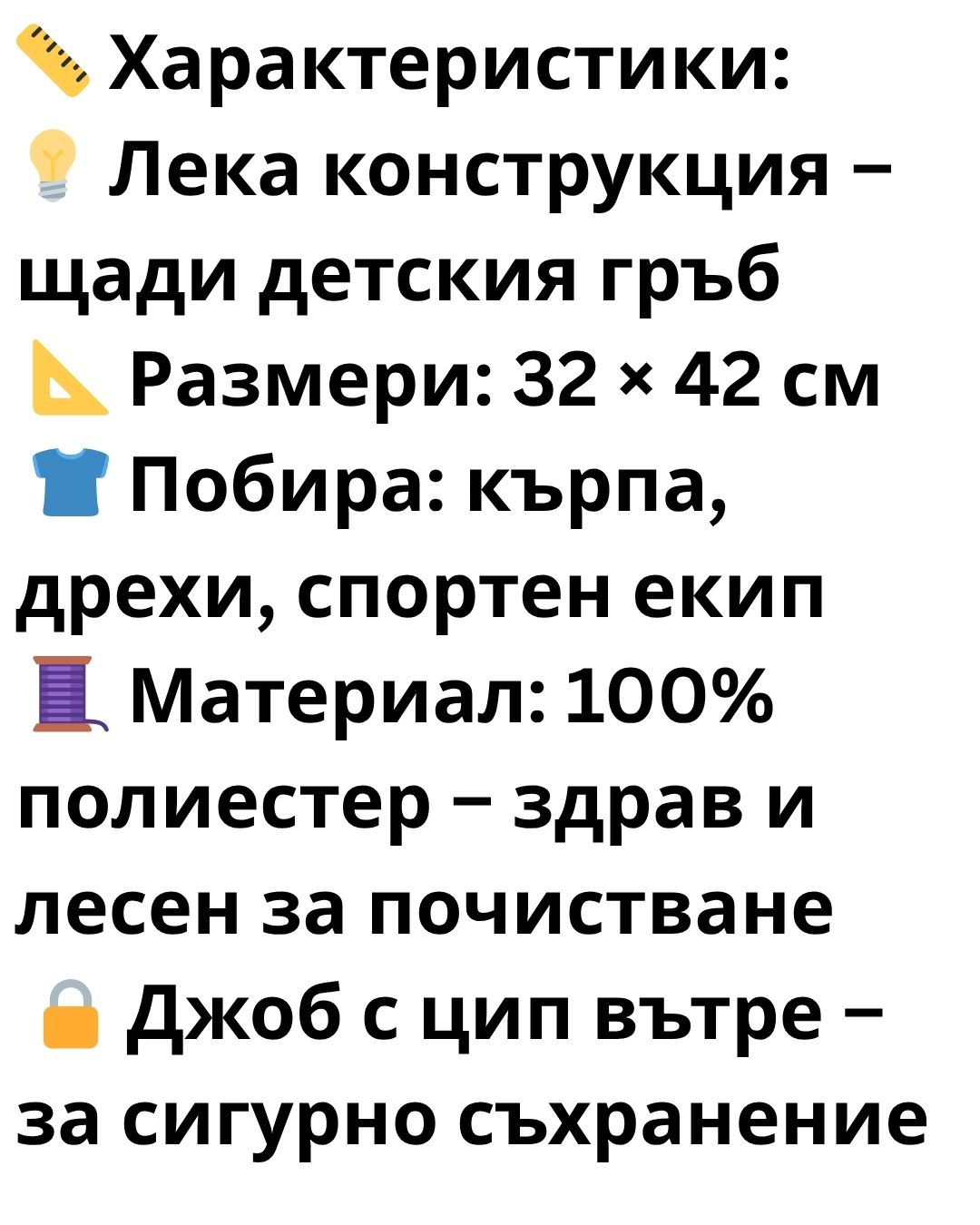 Красиви и практични, подходящи за училище, градина, екскурзии или вкъщи.
