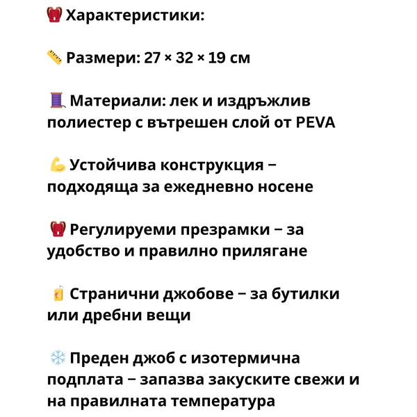 Характеристики на раницата: