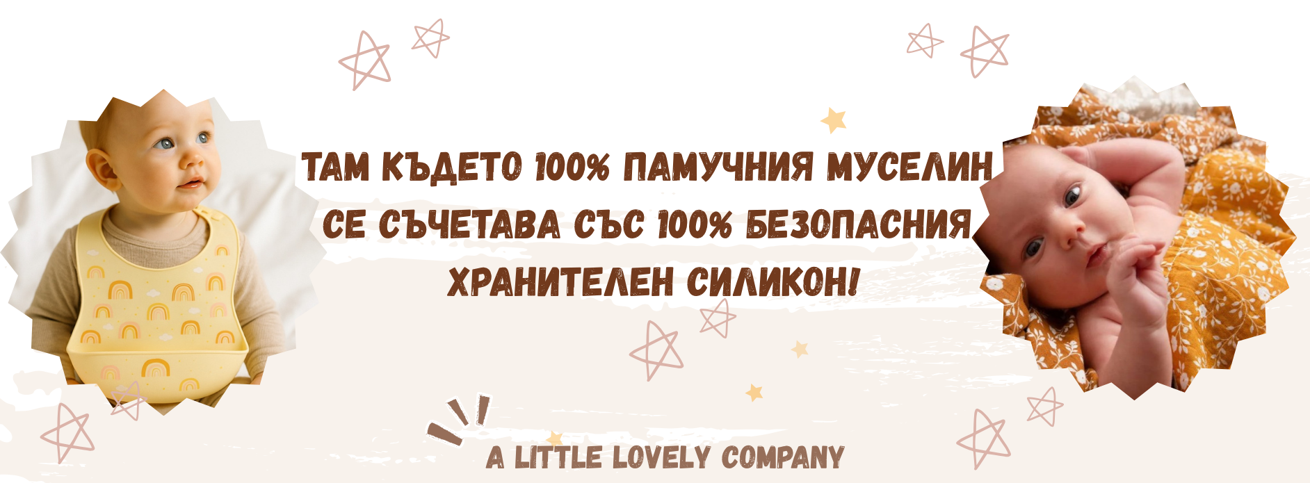 Направете ежедневната рутина приятна за окото си! С красивите десени на любимата холандска марка A Little Lovely Company, ви предлагаме красиво съчетание от 100% муселинови пелени и 100% безопасни силиконови лигавници с 10% отстъпка от цената!