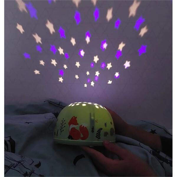 "Леле, какъв вълшебен начин да заспя!" Превключвателят на лампата предоставя различни цветови опции: дъга, оранжево, зелено или синьо. Полезната функция "Таймер" изключва светлината на проектора автоматично след 30 минути. Вашето малко може да заспива под прекрасното звездно небе всяка нощ. Лампата е преносима, така че можете лесно да я опаковате при пътувания, така че да вземете част от уюта на дома, заедно с Вас.
