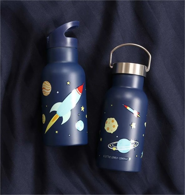 Детето няма да пропусне да пие вода през динамичния си ден с тези красиви и полезни бутилки от неръждаема стомана , които лесно ще комбинирате с останалите артикули от същата колекция.