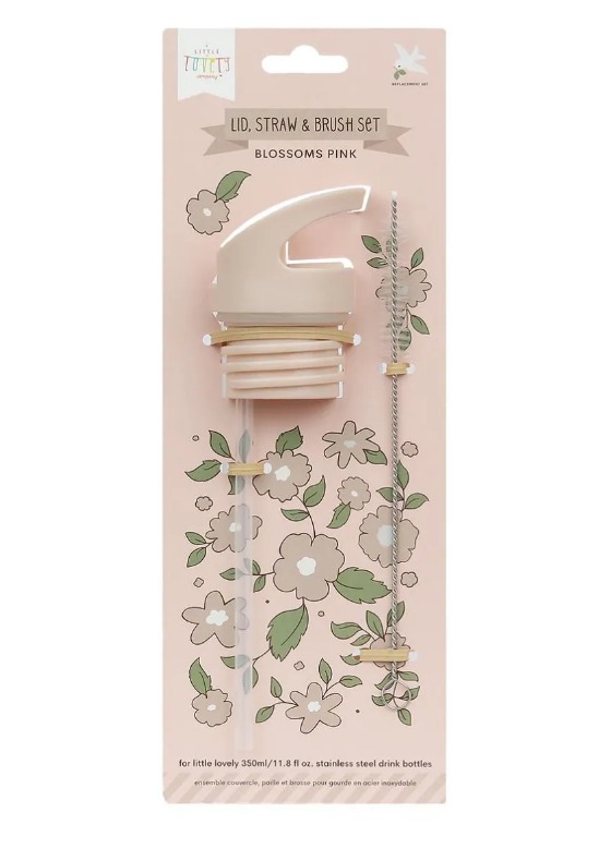 Комплект, съдържащ капаче, сламка и четка за бутилка от неръждаема стомана A Little Lovely Company 350мл.