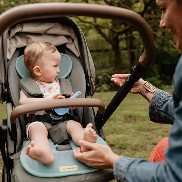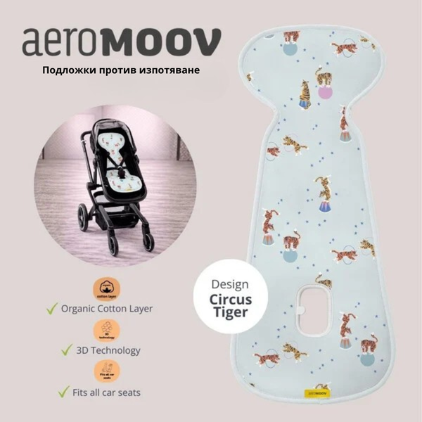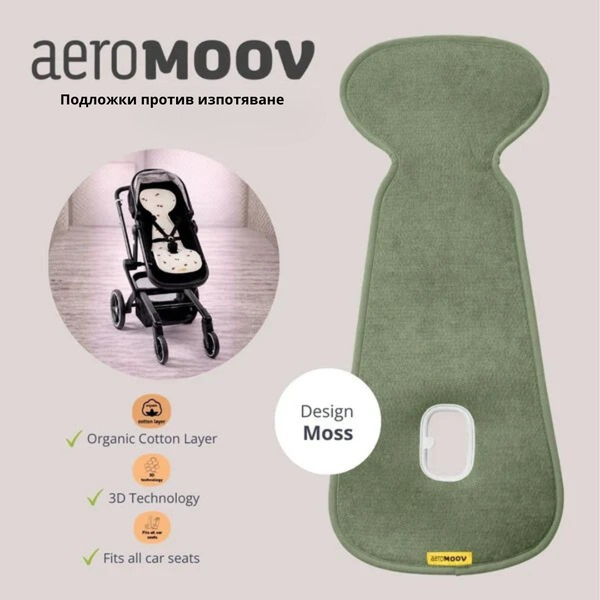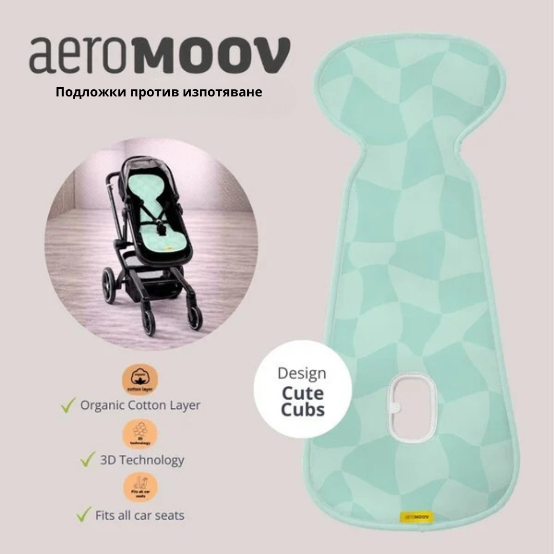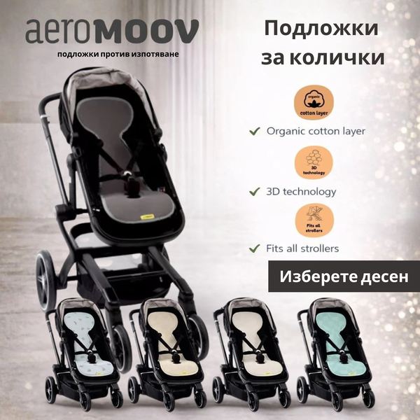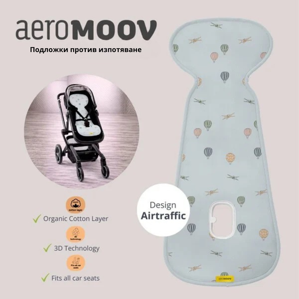 На пазара има различни подложки, но нашият избор е AeroMoov! Те са единствените с горна част направеена от органичен памук и долна част с уникална 3D вентилационна структура. Именно тя създава въздушен слой между детето и количката, като поддържа бебето прохладно, сухо и спокойно дори и в най-горещите дни.