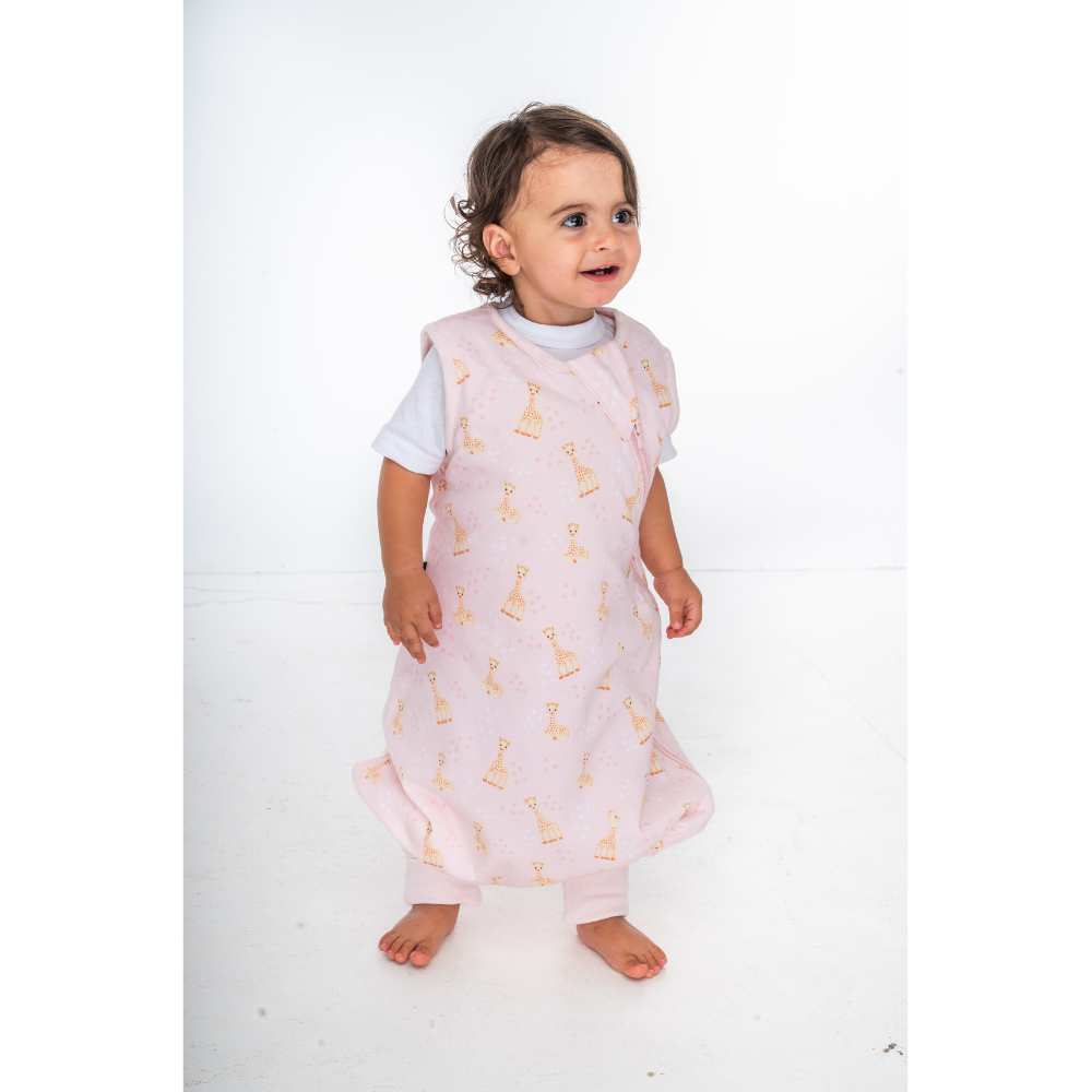 BlissJump x Жирафчето Софи: Спален чувал с крачета от органичен памук - 2.5 тог за температура 16-20°C - Pink