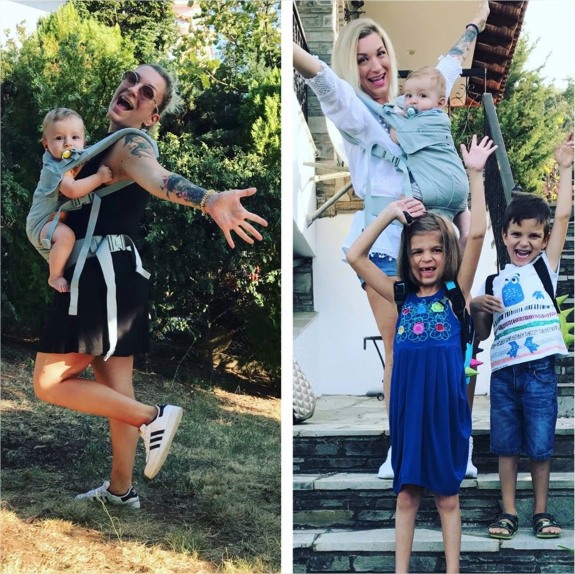 Бебето седи удобно и в правилна позиция, точно там, където иска и трябва да бъде - на гърдите на мама и татко!